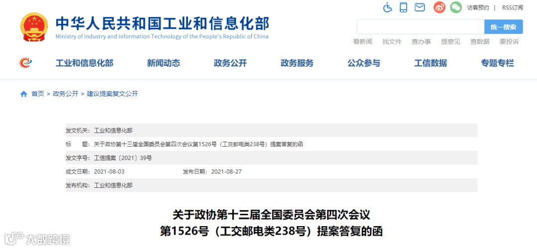 附工信部官网全文: