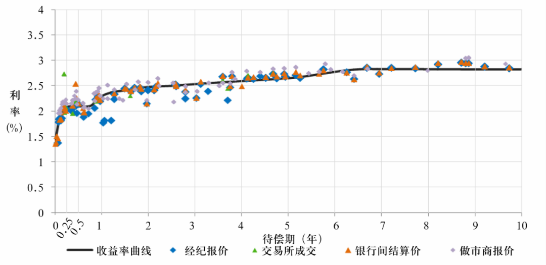 中国国债收益率曲线的编制发布日趋成熟。自1999年发布第一条人民币国债收益率曲线以来,中国国债收益率曲线的编制发布工作日趋稳定成熟。包括中央结算公司、外汇交易中心等基础设施以及彭博等国际信息商均编制国债收益率曲线,财政部、人民银行、银保监会均在官方网站发布中央结算公司编制的收益率曲线。美国有影响力的国债收益率曲线则主要是美国财政部和彭博编制的曲线。中国国债收益率曲线中最受市场关注的是10年期国债收益率走势,该期限附近市场价格点丰富,日均成交近500笔、成交量超过200亿元。