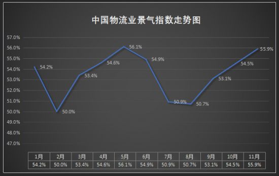 点评:从2018年的中国仓储指数、物流景气指数数据表现来看,1至4月份业务活动保持了较为明显的增长态势,其中2月份指数落入收缩区间,主要受春节因素影响,但随着节后生产经营活动的恢复,至4月份,都处于扩张区间的高位水平。但经历了高峰后连续多月都有明显的滑坡,主要受高温多雨的季节性回落影响。8月起随着营商环境改善,“金九银十”及中秋国庆、双十一等节点影响,传统旺季来临,连续四个月保持在扩张区间,仓储物流行业整体运行良好,短期内的需求预期仍较为乐观。
