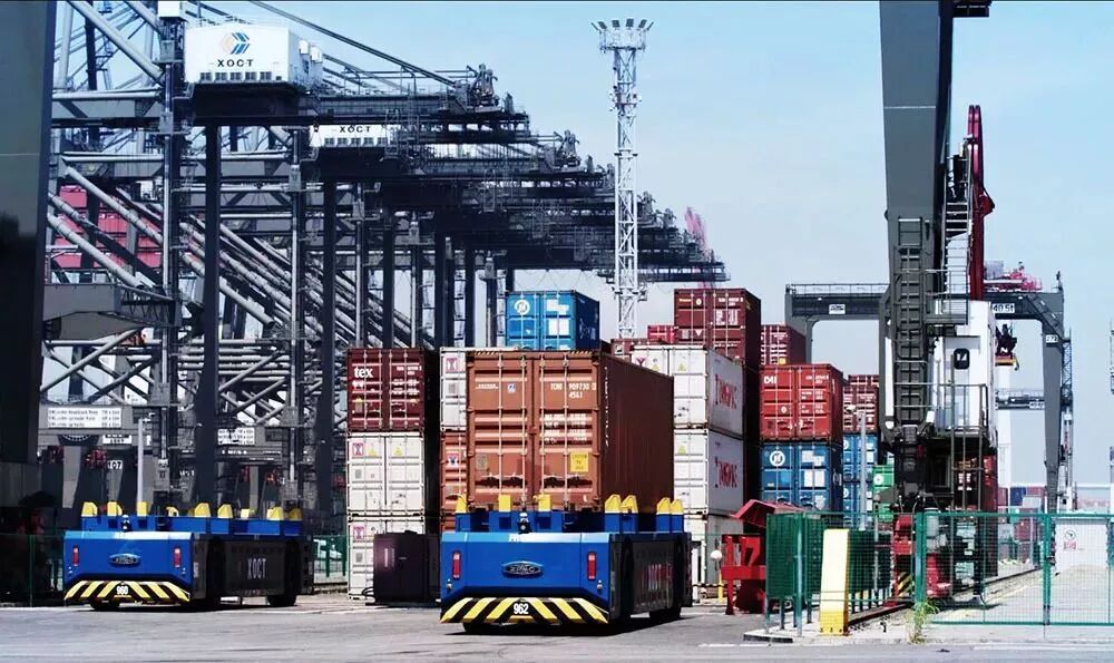 Automated Guided Vehicles,就是在码头上井然有序穿梭忙碌的自动导引车,它的任务是在集装箱船舶和码头堆场之间转运集装箱。