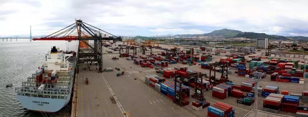中远海运港口厦门远海自动化码头,是中国第一座自动化码头——中国首个商业运营、具有自主知识产权和专利技术的全电动、零排放的全自动化码头。