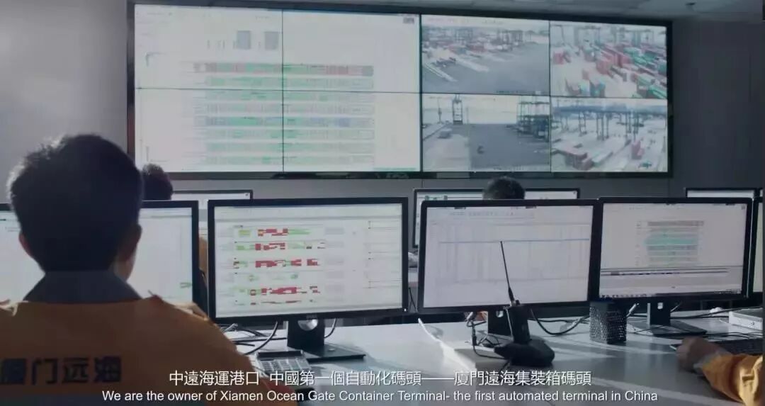 厦门远海全自动化码头整套自动化设备由中央控制室计算机系统控制,这套运营系统集成了世界最先进的软、硬件,从安全、效率和能耗角度决策最优路径,具备精准高效、低成本、高安全性等领先优势,是真正意义上的智能化全自动码头运营系统。