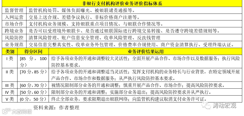 对非银行支付机构的评价主要依据2016年4月央行下发的《非银行支付机构分类评级管理办法》以及2017年7月中国银联业务管理委员会发布的《银联网络非银行支付机构业务评价办法》(银联业管委(2017)6号)。