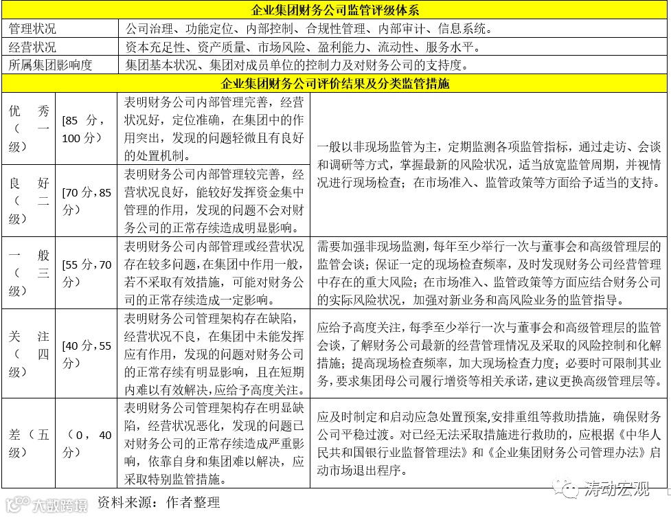 这里我们讨论企业集团财务公司的监管评级,监管评级主要基于管理状况、经营状况和所属集团影响度等三个维度。