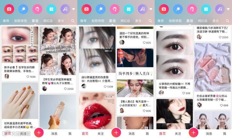打开美图秀秀社交圈,里面内容可谓是什么都有——网红晒照、宠物晒照、拍照/美妆/穿搭教程、好物推荐、美食、旅拍等等。整体感觉是文艺过头,有趣不足,个人化的、情绪化的、能引发讨论和共鸣的高传播潜力内容极少,能看到明显的运营痕迹。