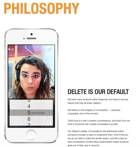 这是“阅后即焚”的概念的产品化,也是对“用户”和“内容”的深入洞察。Snapchat 认为聊天,不管是线上还是线下,都应该是“即时”、“当下”的。就像你和你朋友面对面聊天时,除非有人录下来,这段对话只有你知他知,不会留下别的痕迹。