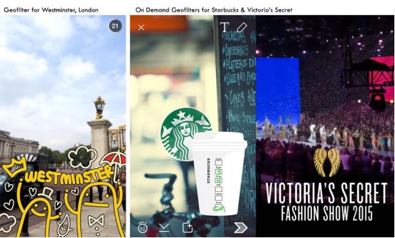 左边是伦敦西敏寺、右边两个分别为星巴克和2015维密秀的地理位置滤镜
