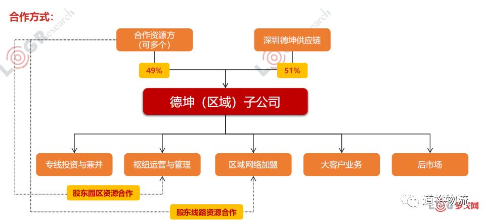 德坤的扩网方式是通过与当地资源方成立合资子公司,子公司由德坤控股,德坤统一IT系统、品牌和财务管理,其他由当地资源方管理,“省际干线控股自营+省内区域网络加盟+园区枢纽场站控股自营”的模式。走的是比较稳健的方向,但建网的速度会较慢,胜在服务质量可控。