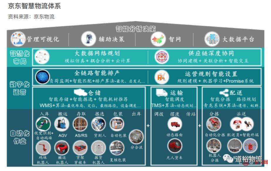 相对菜鸟社会化协作过程中对合作伙伴的数字化改造不同,以自建为核心的京东物流自成立开始,就带着很强的数字化属性。
