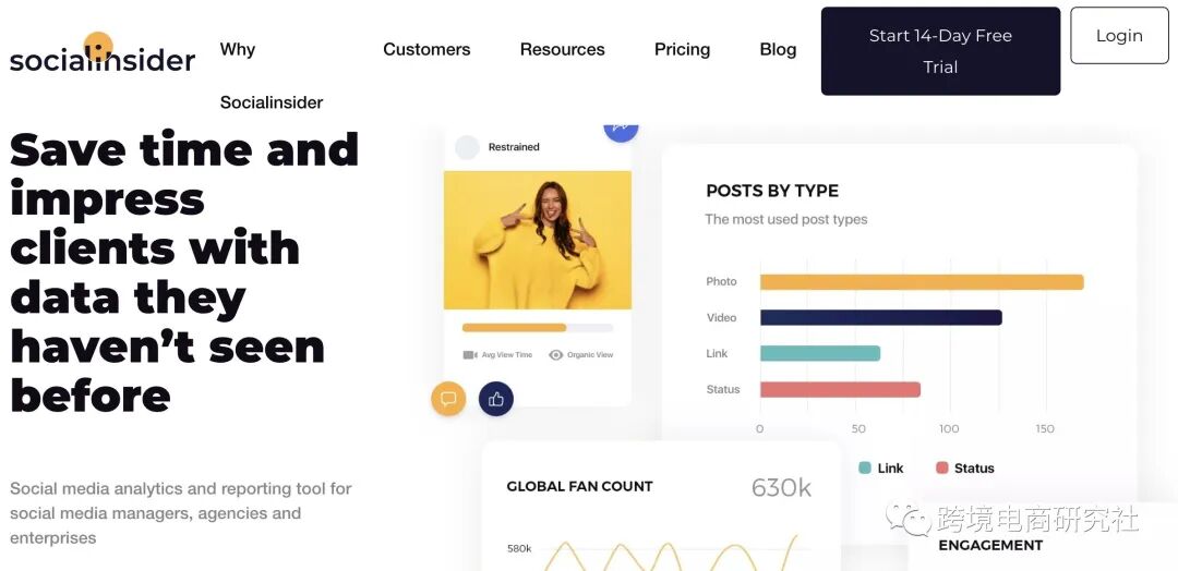 关键指标,例如平均参与度、每个帖子的平均参与率和追随者增长