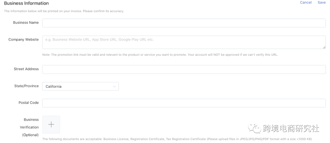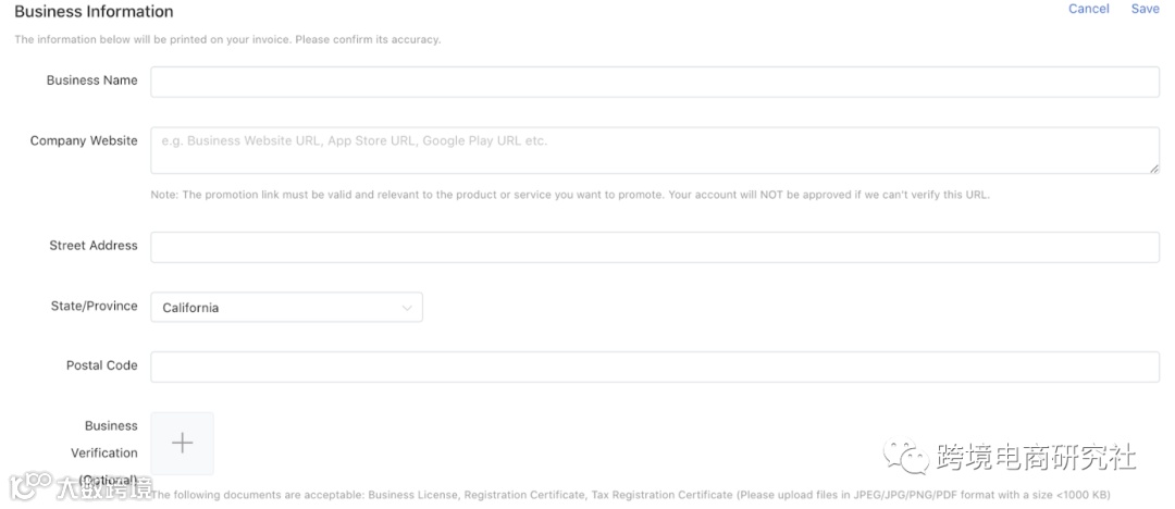 商业验证(可选):上传你用于在你所在地区开展业务或纳税的官方发布的号码。