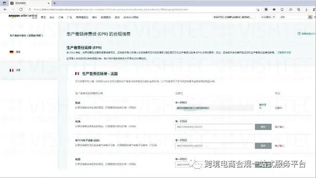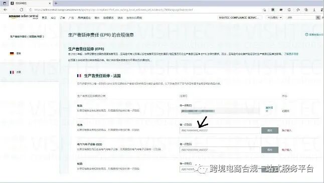 今天,有部分卖家后台已收到法国EPR注册号UIN的上传链接灰测入口,要求提交各个回收类的UIN号,目前上传入口只是灰色阶段,仅有极少部分卖家能看到链接。