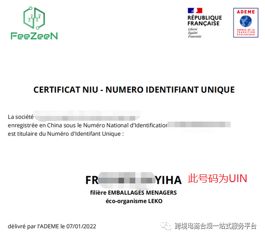 1. 法国EPR注册完成后,我们会分发UIN注册码。