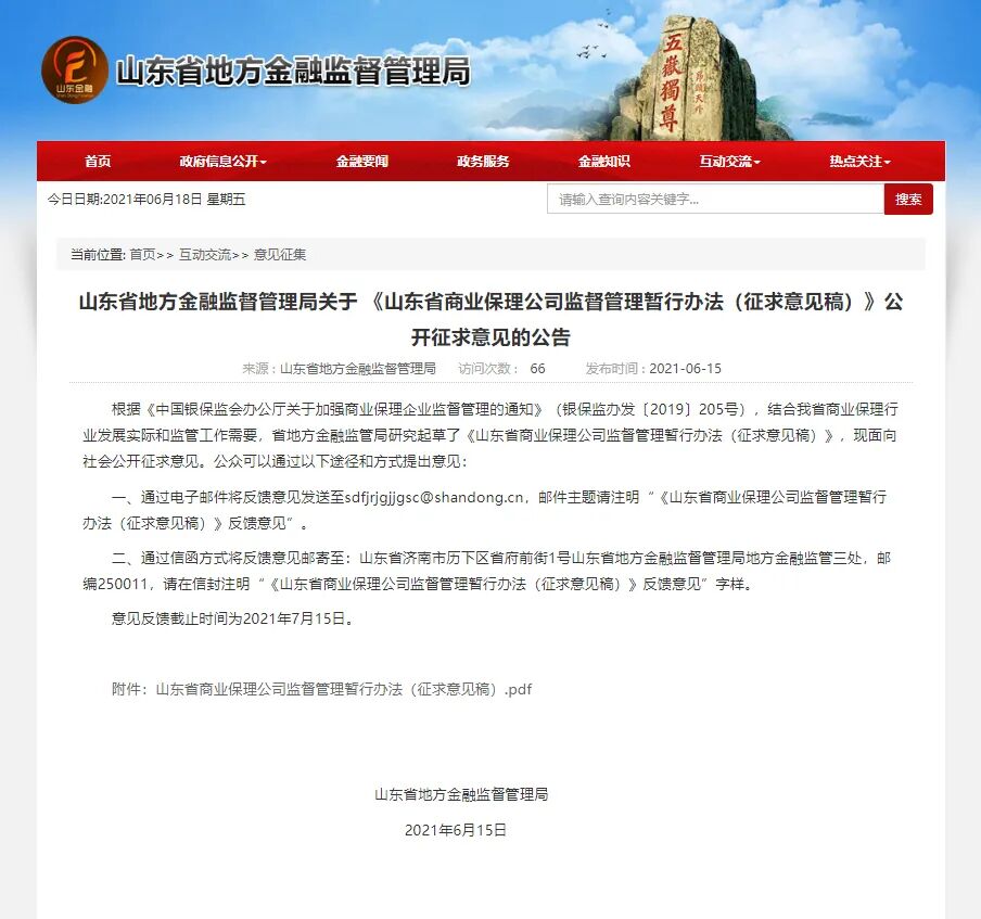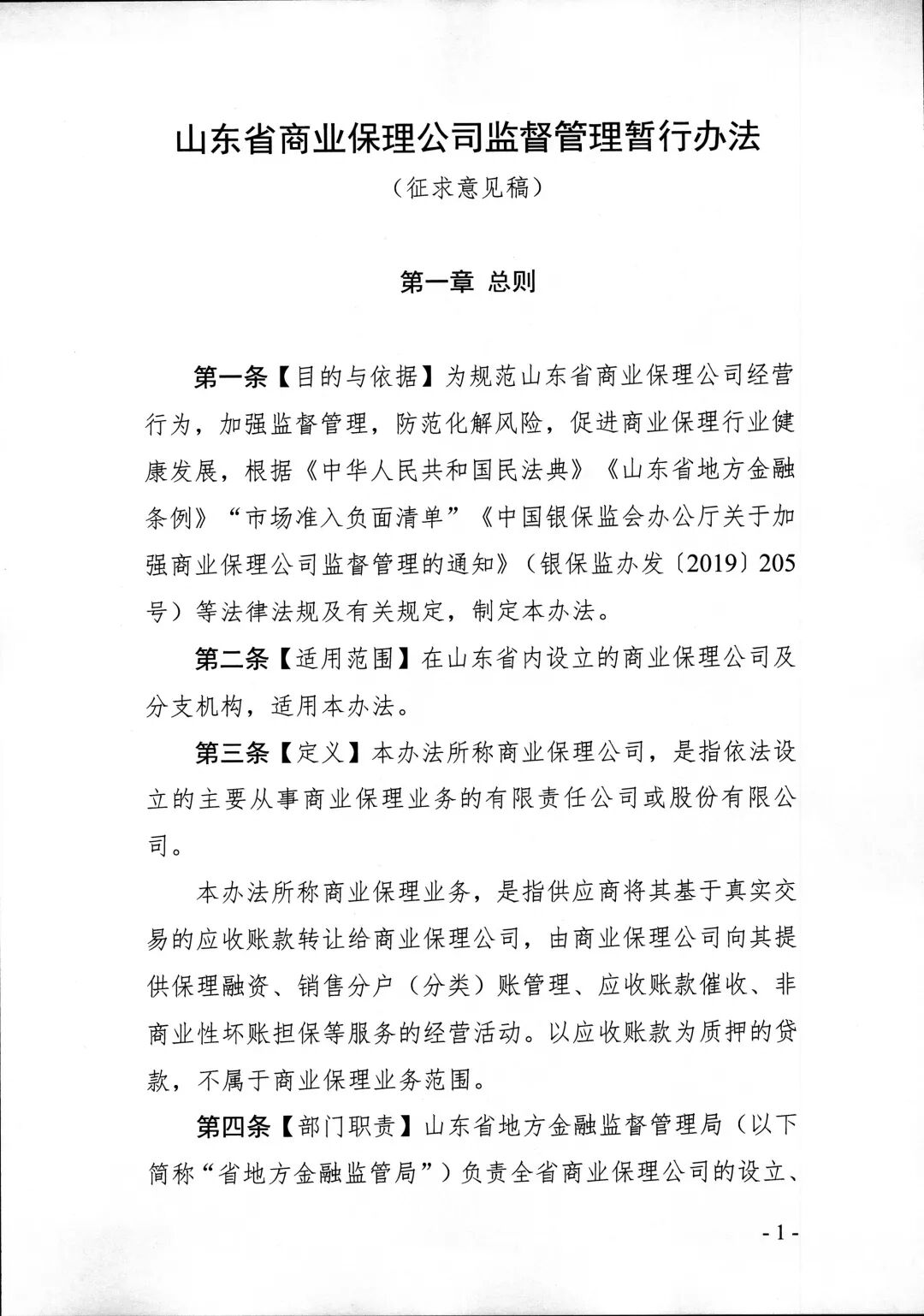 山东省地方金融监督管理局关于 《山东省商业保理公司监督管理暂行办法(征求意见稿)》公开征求意见的公告