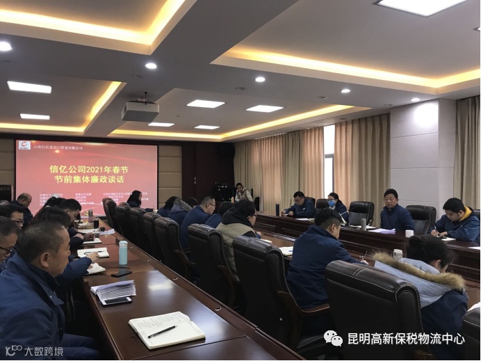 2月9日,云南信亿进出口贸易有限公司开展2021年春节节前集体廉政谈话,对春节期间公司党风廉政建设和纪律作风安排部署,并提出具体要求。