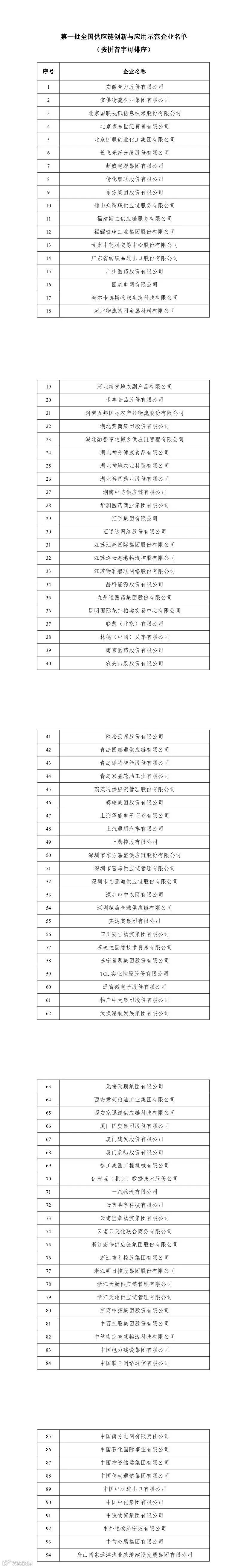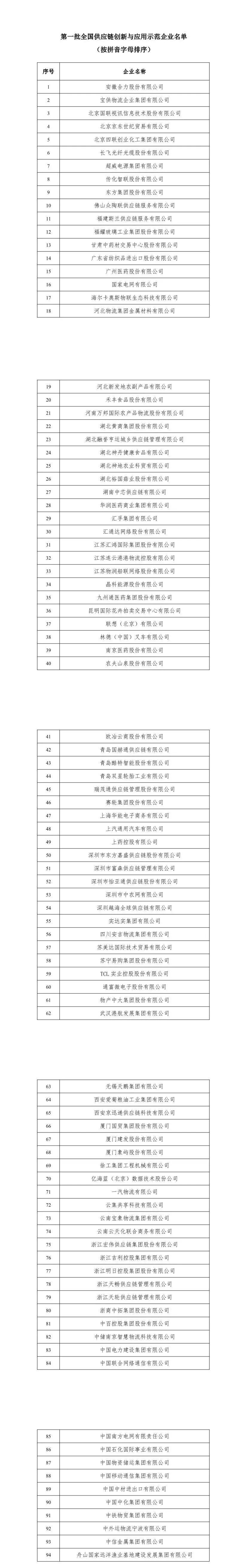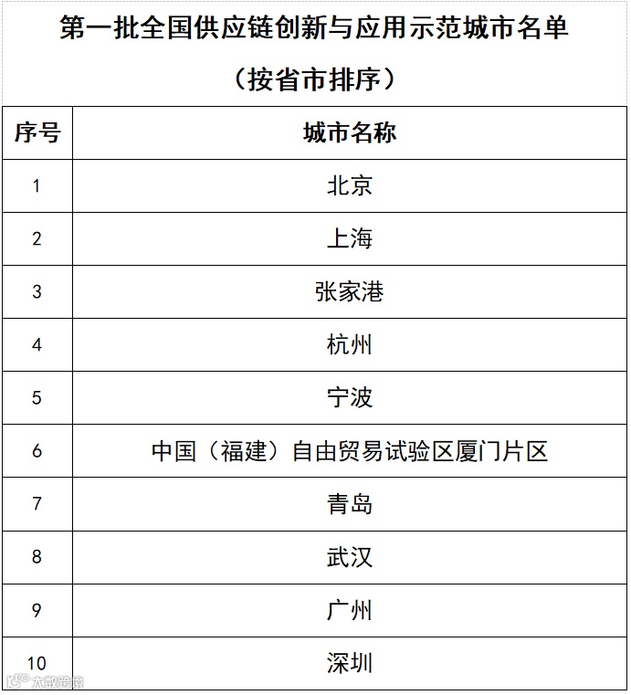 商务部等8单位关于公布第一批全国供应链创新与应用示范城市和示范企业名单的通知