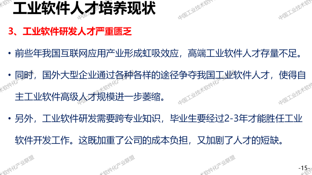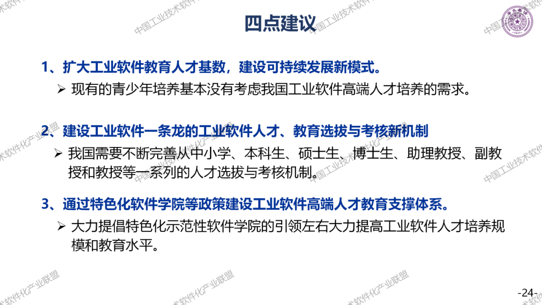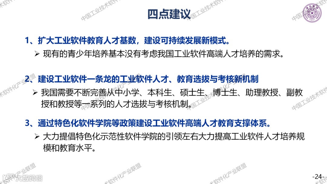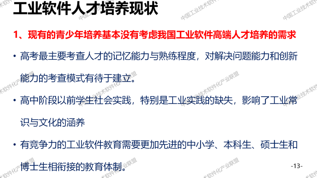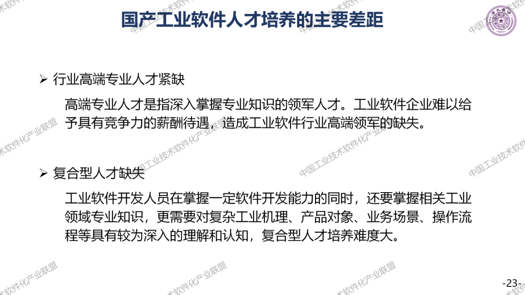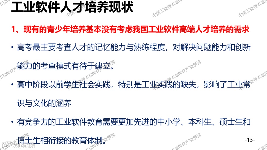 工业软件人才培养是一个大话题,必须要全社会,全方位的支撑,要了解这两个短板,一个是行业高端的专业人才,一个是复合型人才。最后提一个建议,把高校院所工业企业和第三方机构,形成一股绳,联合来培养工业软件人才。工业软件人才培养周期相当长,绝对不是读一个大学,就能把一个工业软件人才培养好,一定要在产业里面充分的实践。