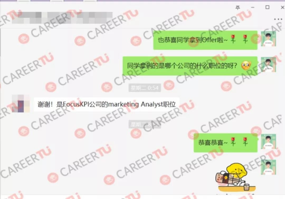 恭喜职图D学员获得FocusKPI的全职工作Offer。本科是英国文学,在美国进修传播、通讯专业,读书的时候其实并没有考虑到市场对人才的需求,对工作和公司情况关注的真的很少。读书的时候都是随着自己的喜好来选择课题,到了要面临就业问题的时候才发现自己选择的课题和专业根本就不容易找到对口的工作,同时Marketing方向的同学可能都会面临一个问题,学习东西太宽泛,好像什么都能做,又什么都不精,对具体的工作情况又不太了解,同个领域下那么多细分的职业到底什么最适合自己?