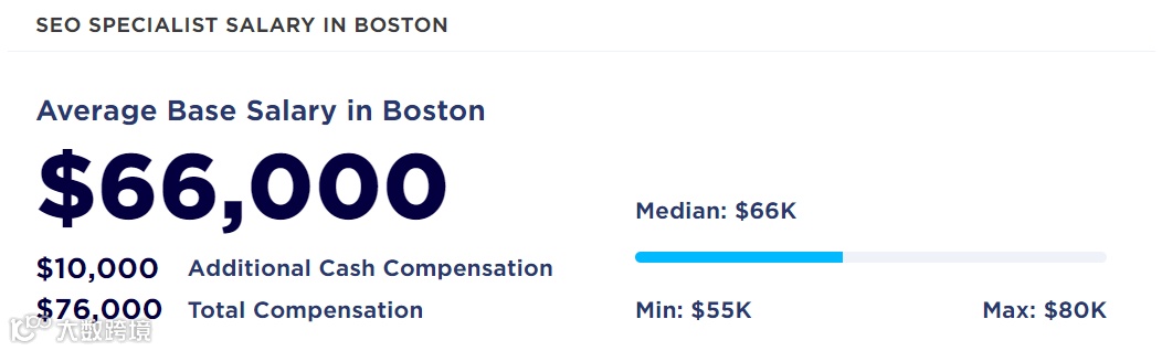波士顿SEO Specialist岗位的平均工资为6.6万美元,平均额外现金报酬为1万美元,平均总薪酬为7.6万美元,中位数为$66k。2020年,大数据的热潮会保持居高不退,各行业对数据分析人才的需求量依旧非常大,几乎所有行业都需要拥有优秀分析能力的人才。相比于传统的Brand Marketing,Digital Marketing用数据说话,有更为清晰的指标(KPIs)去衡量宣传和销售的成果。近年来随着Modern Tool和Thechnologies的日益发展以及互联网时代全球化的趋势,到2022年,全美预计会新增24,000个Marketing相关职位。