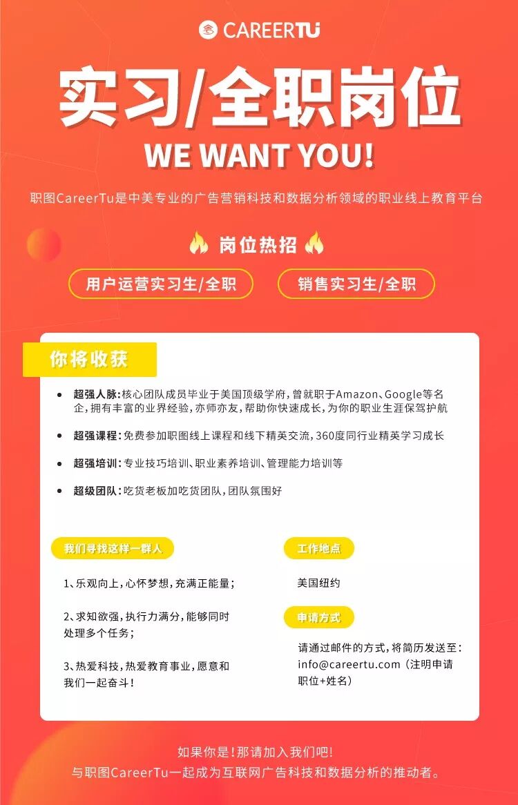 CareerTu (www.careertu.com) 是互联网新职业在线技能学习平台,专注于数字营销 数据分析 商业分析 产品设计。Unlock Your Potential 激发潜能,迭代自我 突破技能界限,实现职场飞跃