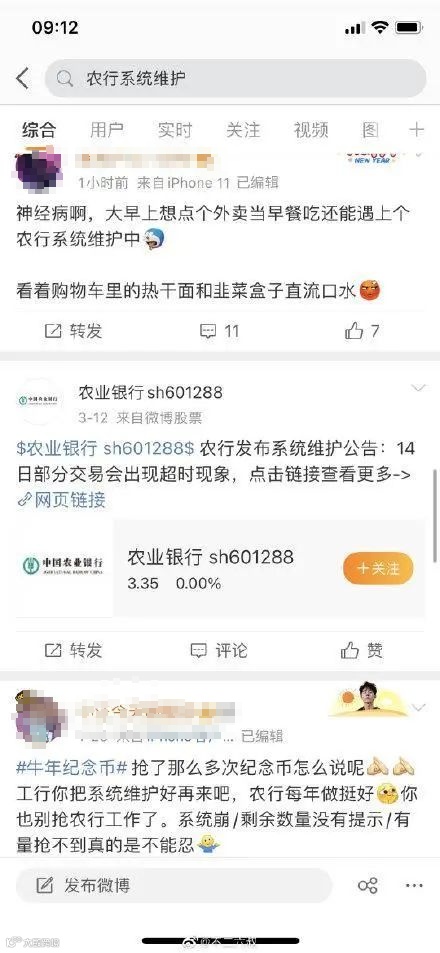网友表示,农行维护的太频繁了,影响到了日常支付生活。