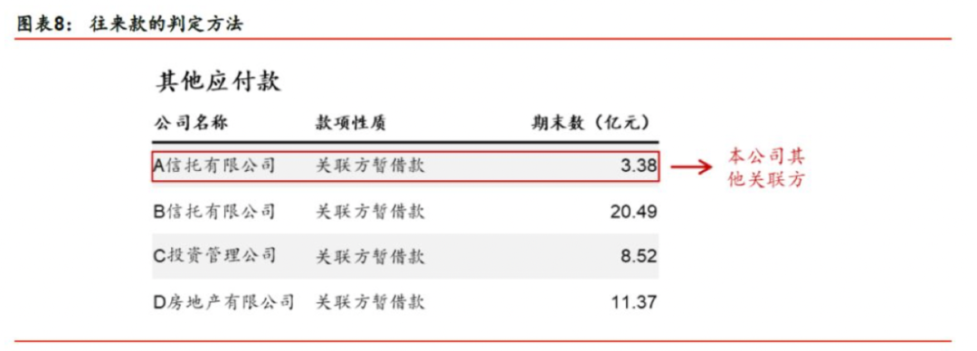 因此,建议关注其他款、其他应付款科目的规模、差值、具体主体的资金往来情况。如果往来款项规模较大、存在对母公司大量的资金占用以及与金融类企业的关联资金往来,代表着表外负债存在的可能性较大。