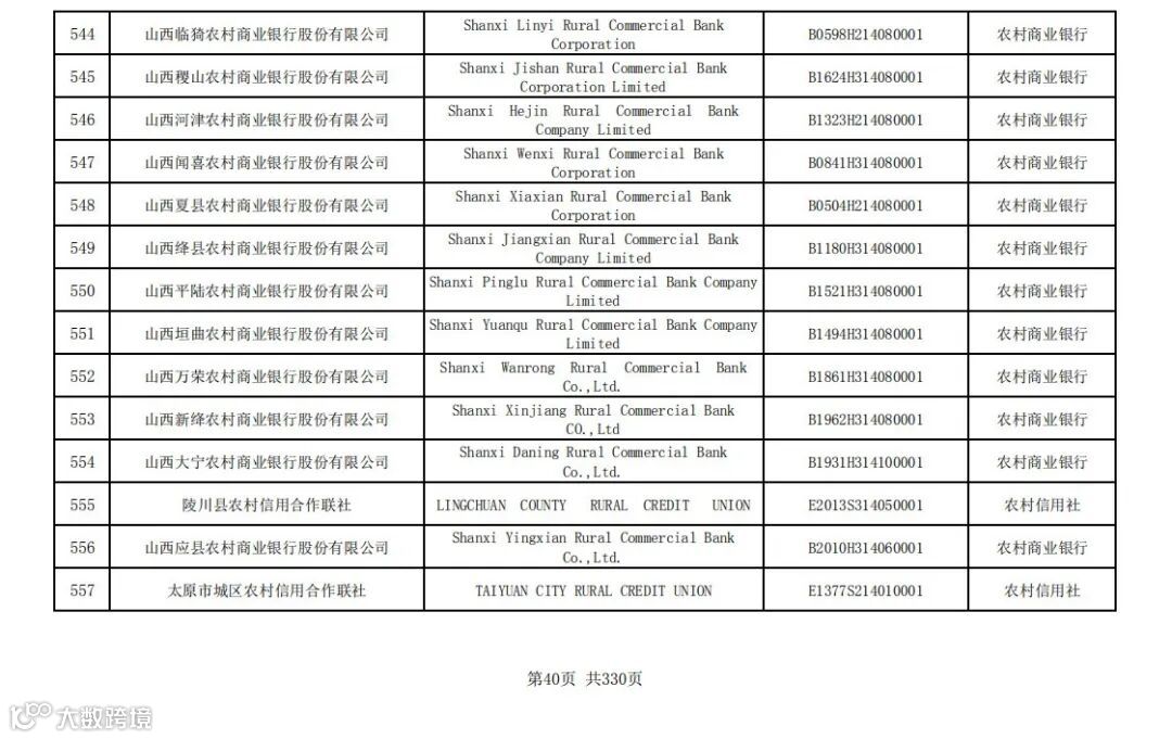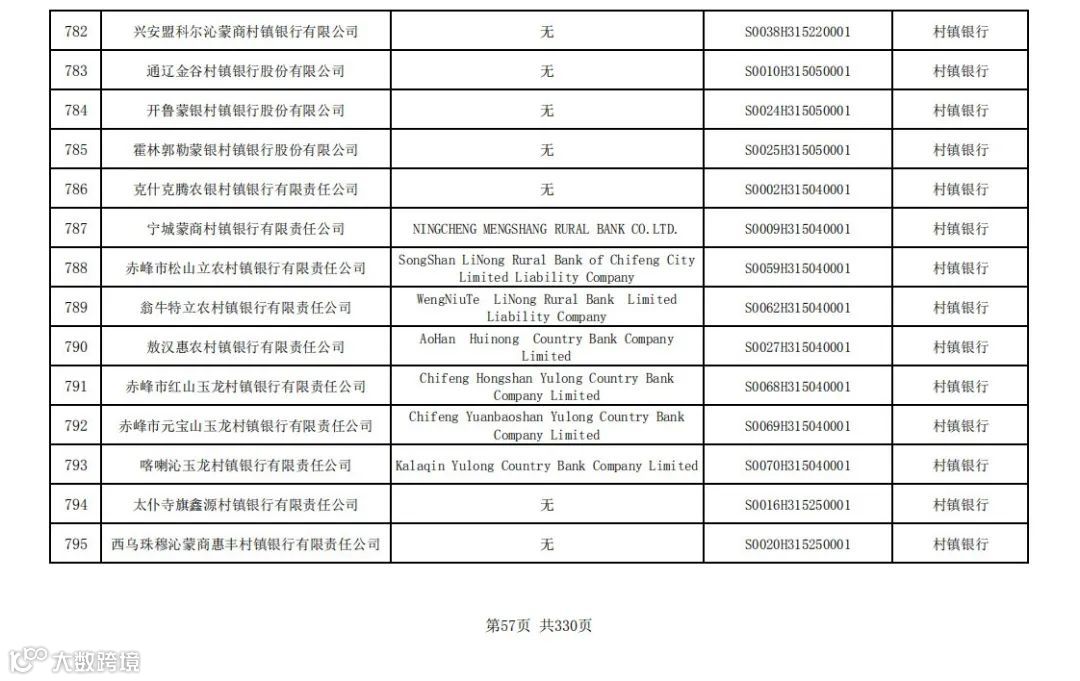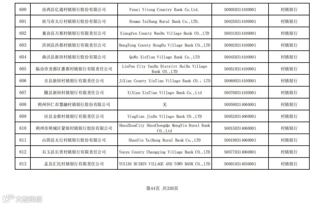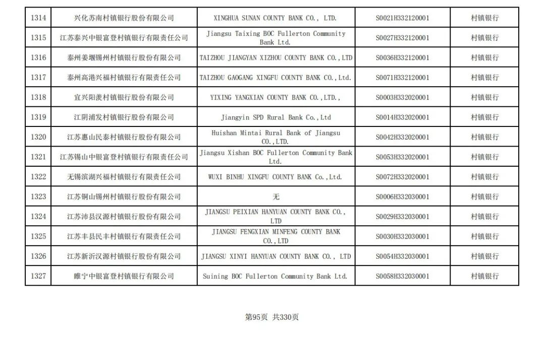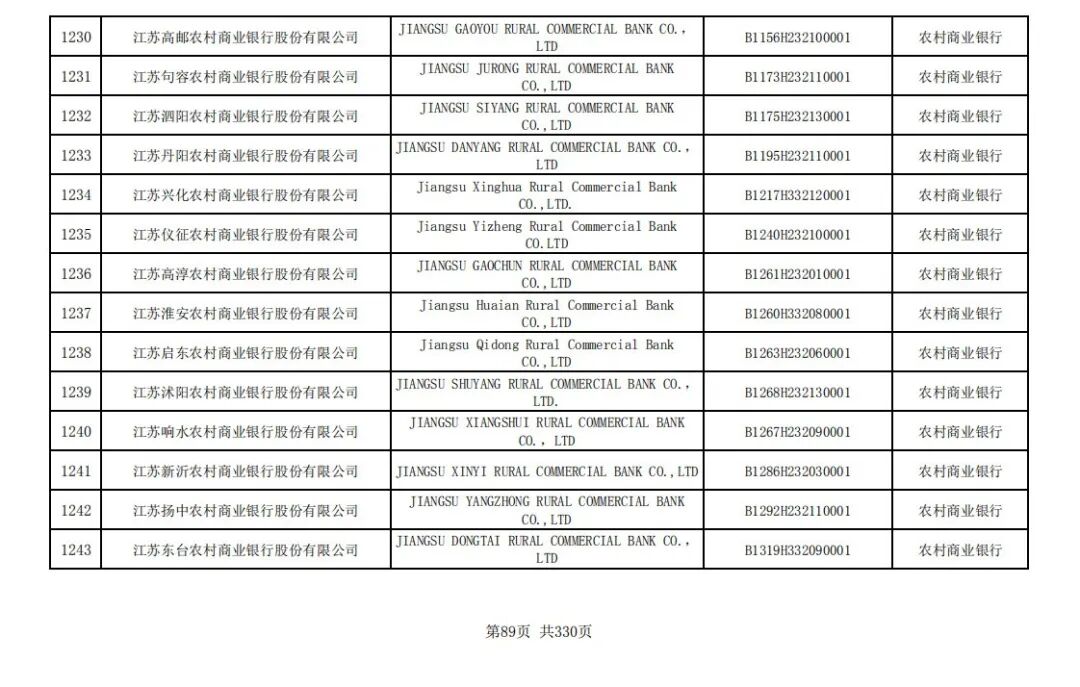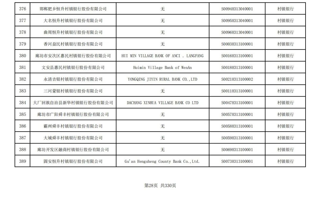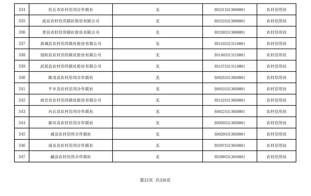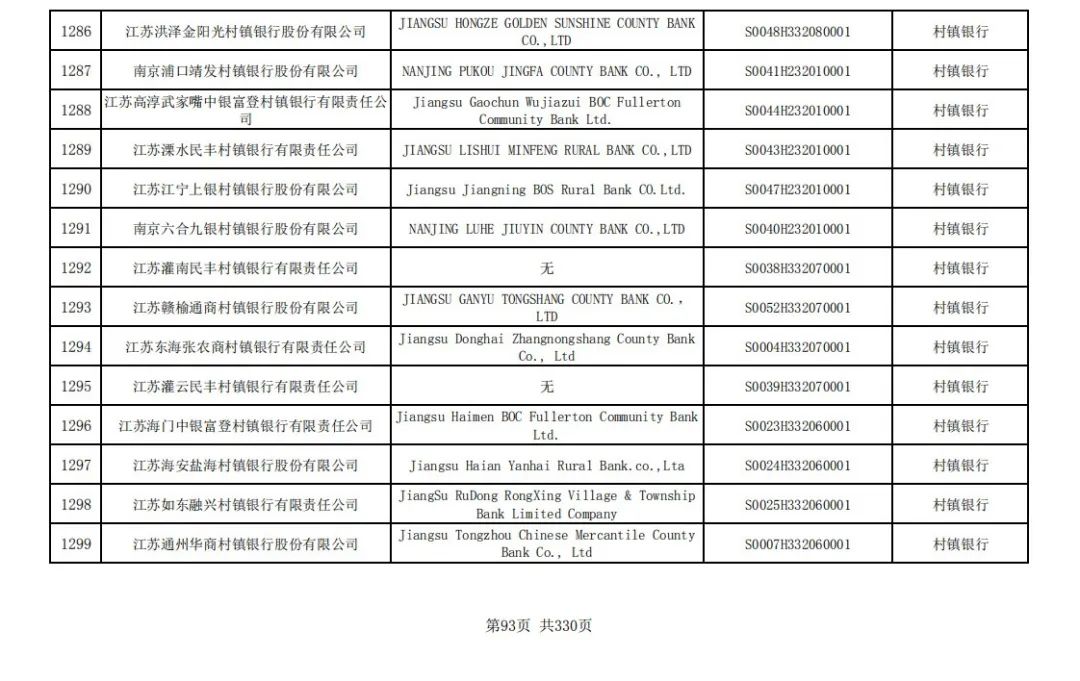 名单中包括1家开发性金融机构、2家政策性银行、6家国有大型商业银行、12家股份制商业银行、5家金融资产管理公司,以及住房储蓄银行、城市商业银行、民营银行、农村商业银行、村镇银行、贷款公司、农村信用社、农村资金互助社、外资法人银行、信托公司、金融租赁公司、企业集团财务公司、汽车金融公司、消费金融公司、货币经纪公司,此外还包括金融资产投资公司、银行理财子公司等在内的其他金融机构等,共计4601家。