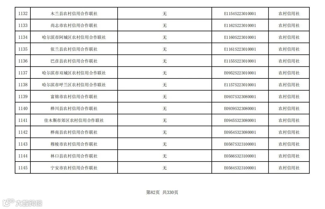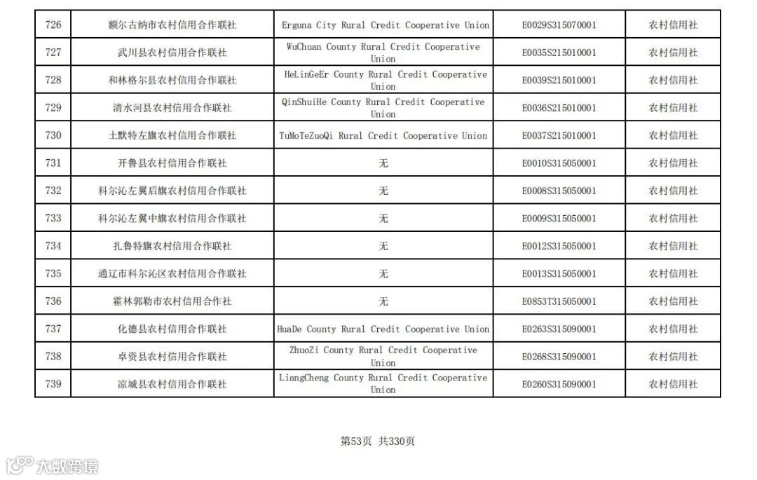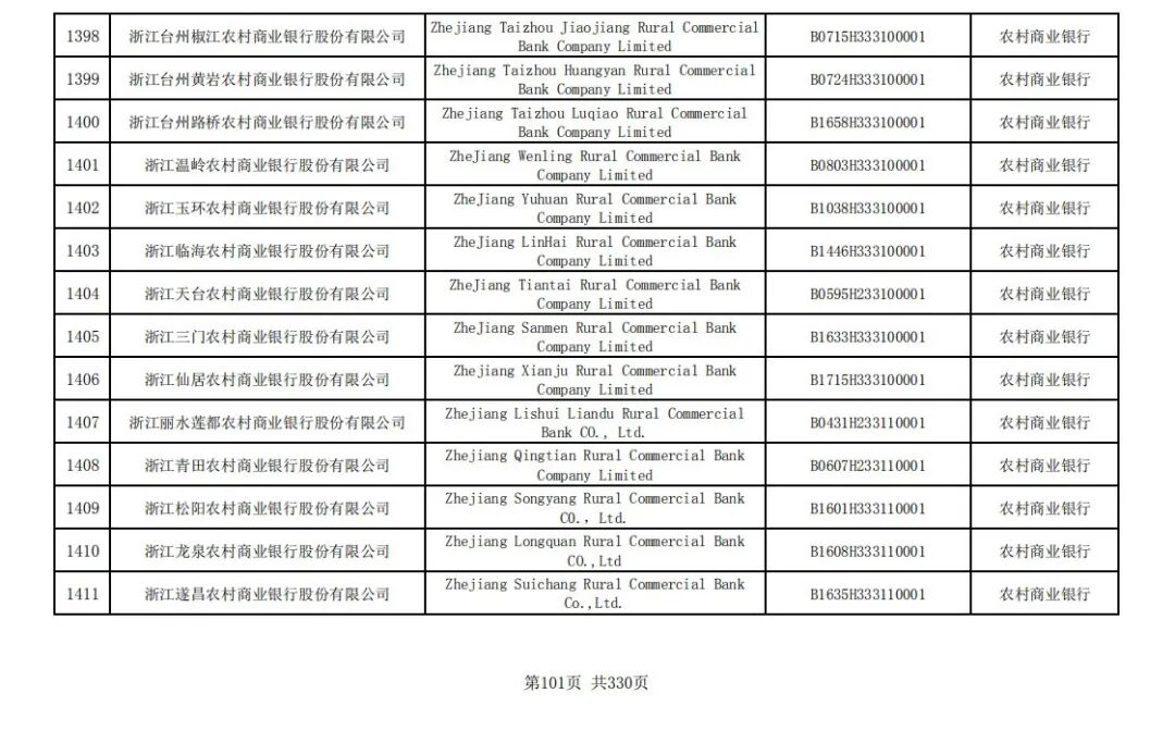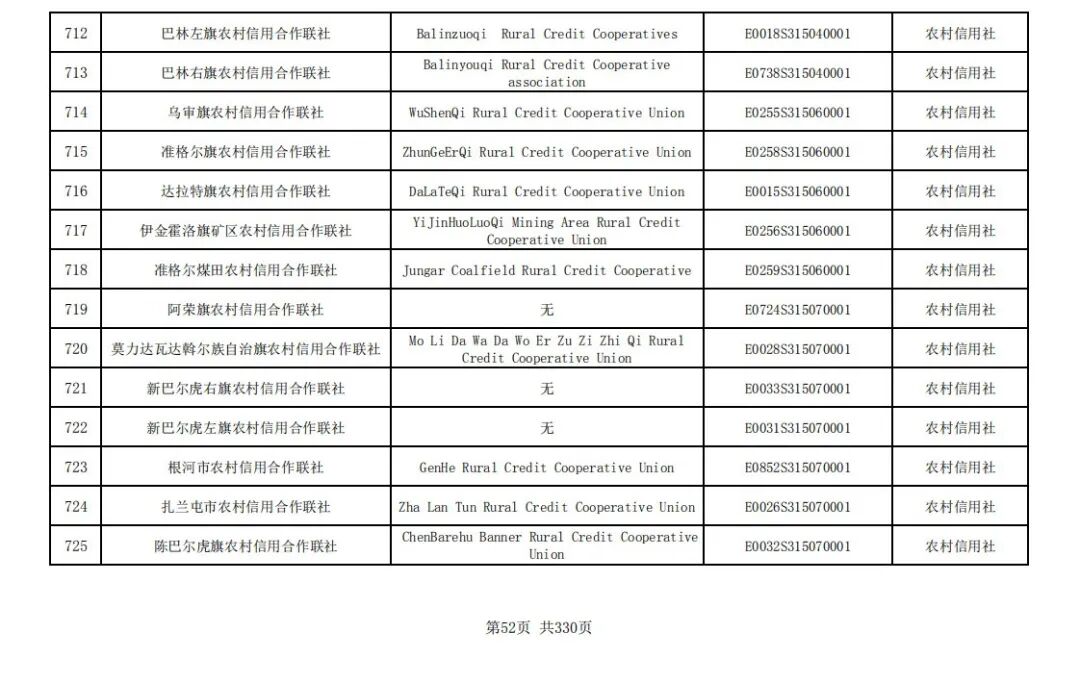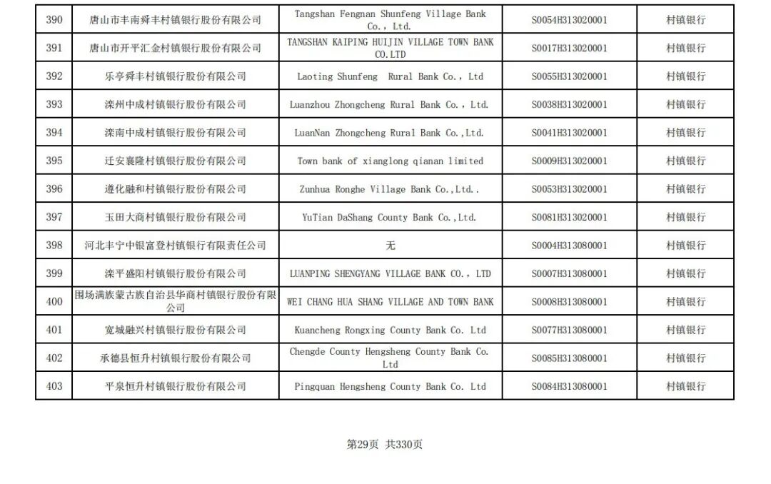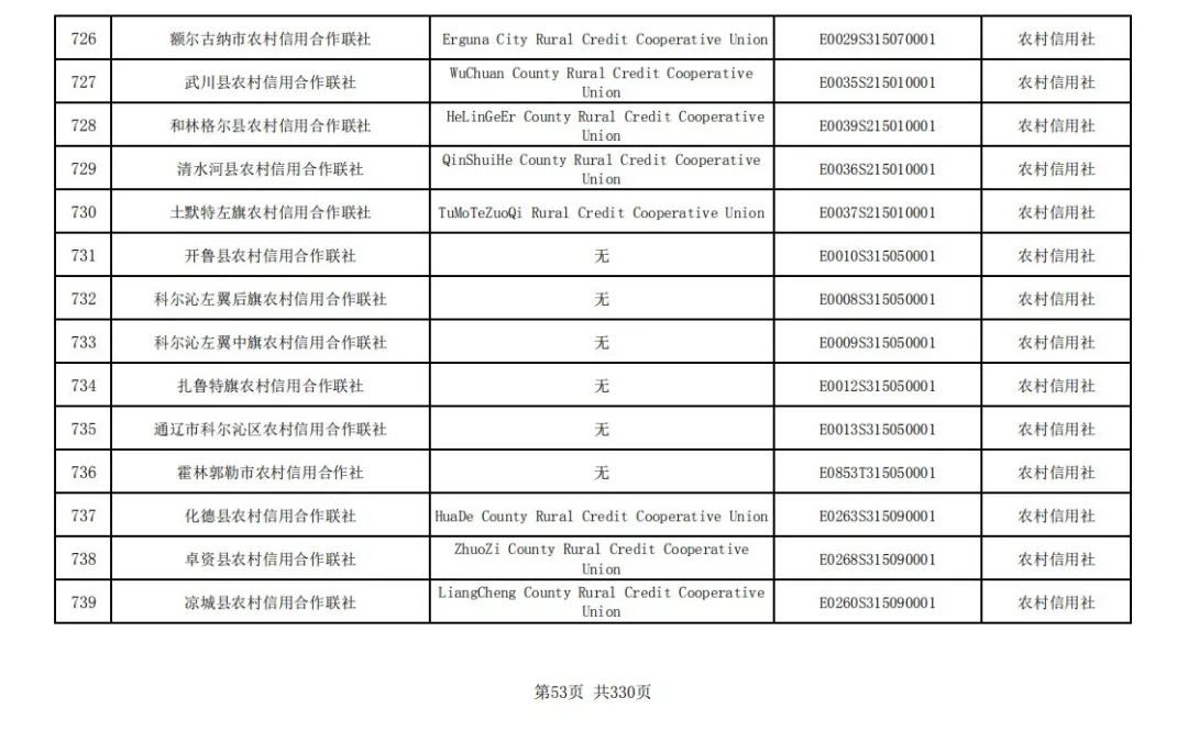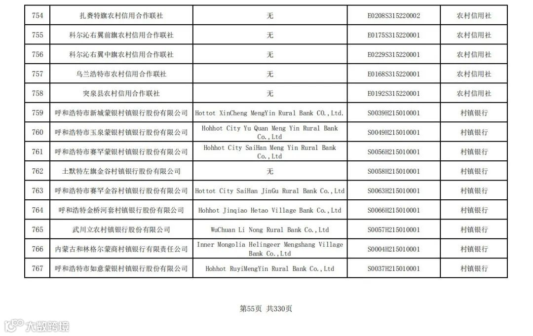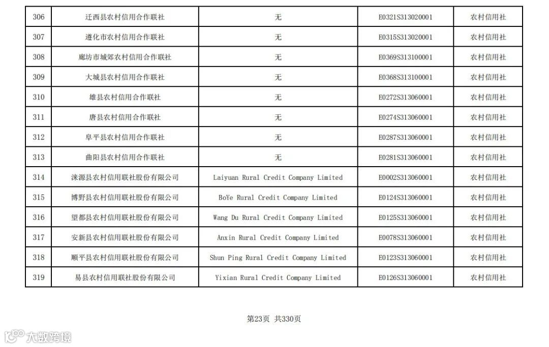 名单中包括1家开发性金融机构、2家政策性银行、6家国有大型商业银行、12家股份制商业银行、5家金融资产管理公司,以及住房储蓄银行、城市商业银行、民营银行、农村商业银行、村镇银行、贷款公司、农村信用社、农村资金互助社、外资法人银行、信托公司、金融租赁公司、企业集团财务公司、汽车金融公司、消费金融公司、货币经纪公司,此外还包括金融资产投资公司、银行理财子公司等在内的其他金融机构等,共计4601家。