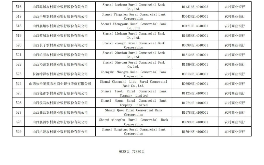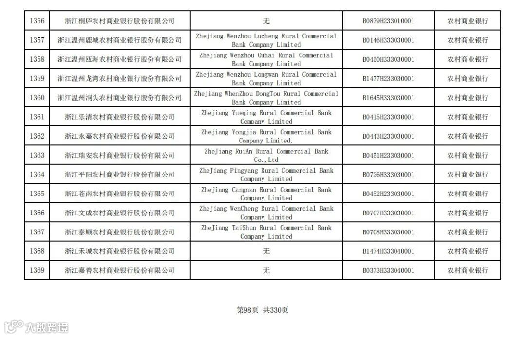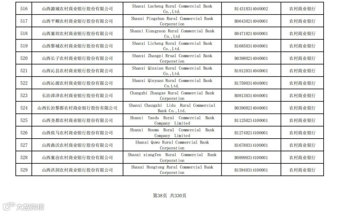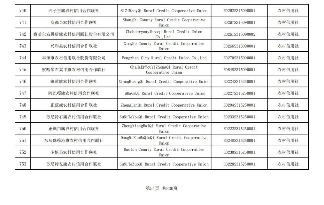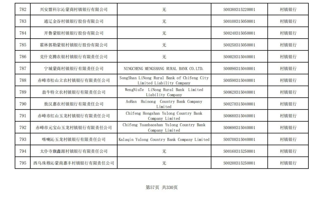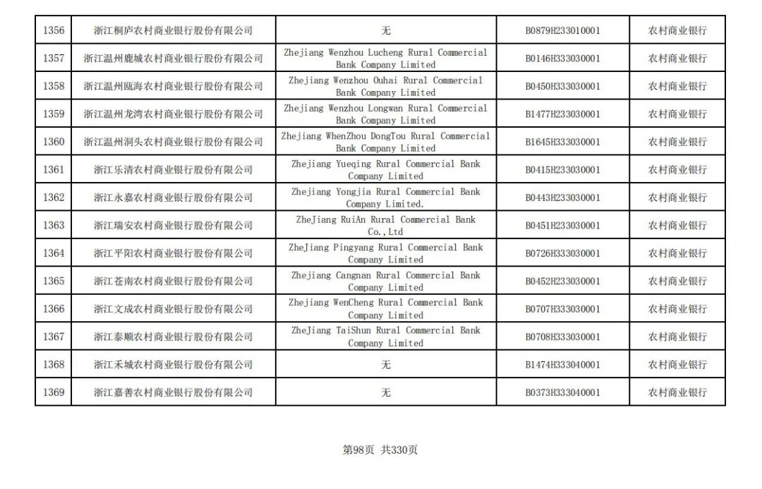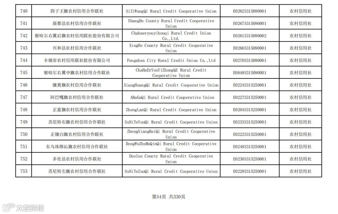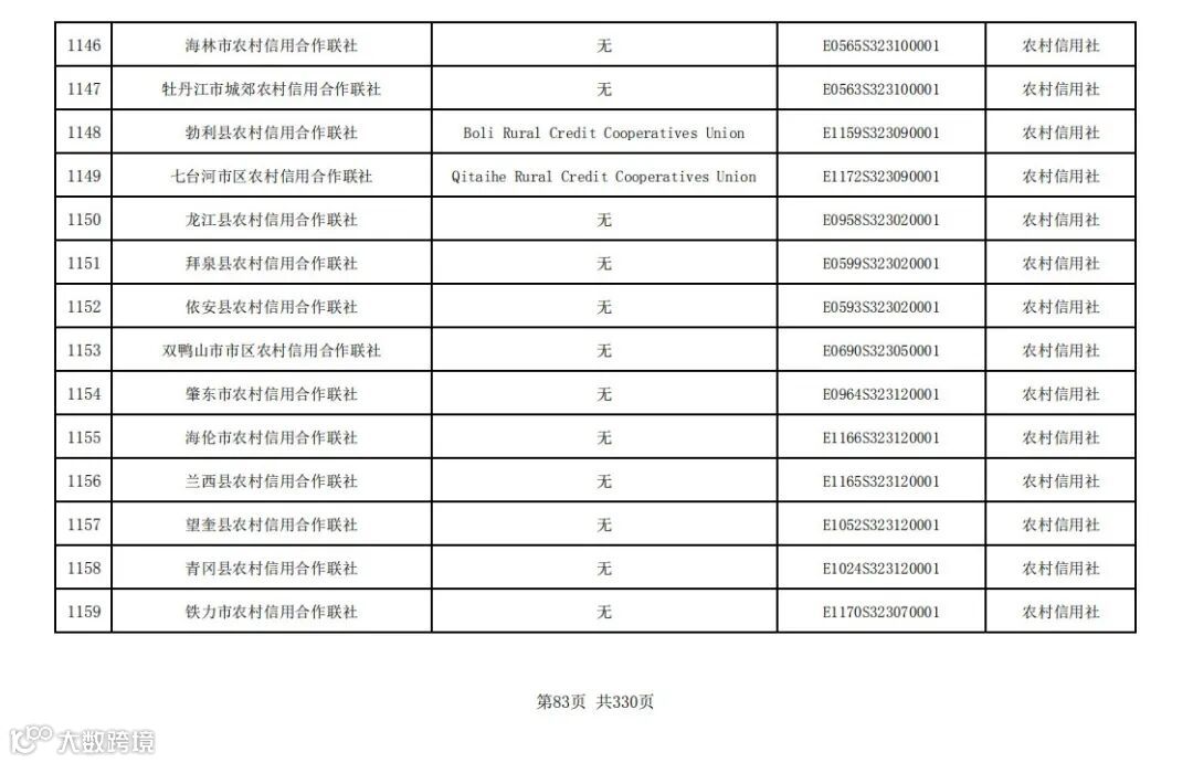 名单中包括1家开发性金融机构、2家政策性银行、6家国有大型商业银行、12家股份制商业银行、5家金融资产管理公司,以及住房储蓄银行、城市商业银行、民营银行、农村商业银行、村镇银行、贷款公司、农村信用社、农村资金互助社、外资法人银行、信托公司、金融租赁公司、企业集团财务公司、汽车金融公司、消费金融公司、货币经纪公司,此外还包括金融资产投资公司、银行理财子公司等在内的其他金融机构等,共计4601家。