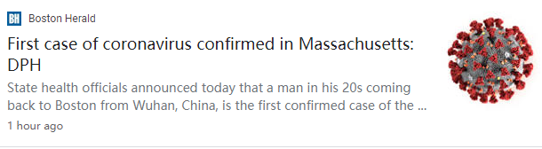 波士顿卫生局刚刚核实,一名从中国武汉返回麻州的男子被证实患有新型冠状病毒!这名男子今年20多岁,住在波士顿,回到麻州后寻求医疗服务,自那以后一直处于隔离状态,目前患者情况良好。