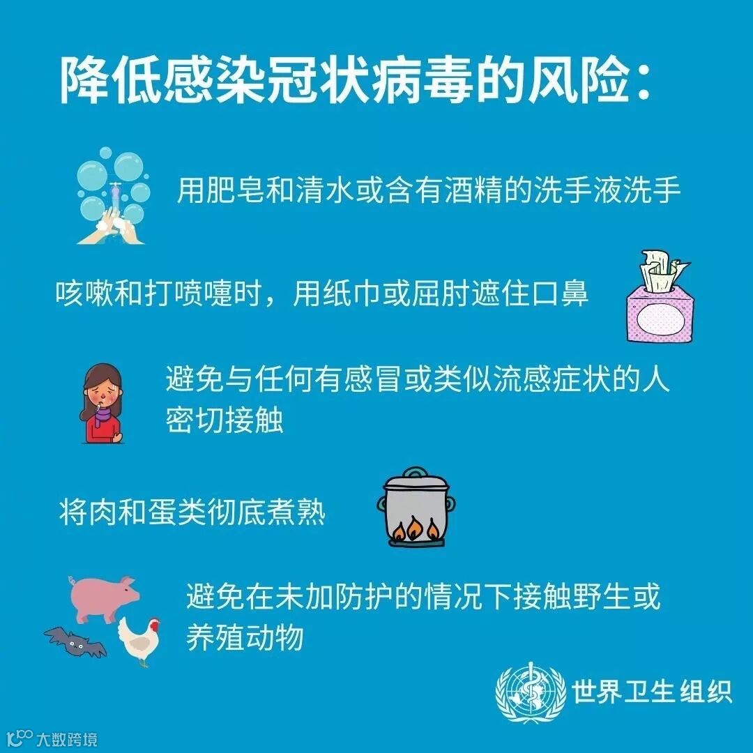 在特殊时期,不管在国外还是在国内,都一定要注意防护!戴口罩、勤洗手、减少去人群聚集地、减少出门,由世界卫生组织发布的具体预防冠状病毒感染风险措施小编已经贴在文末!都做起来!