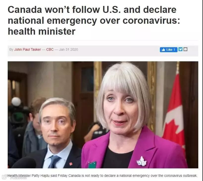 就在昨天,加拿大卫生部长Patty Hajdu明确表示:“加拿大不会跟随美国和澳洲限制中国人(或去过中国的外国人)入境。我们认为禁止入境的做法现在没有支持的证据,也并不合理。”
