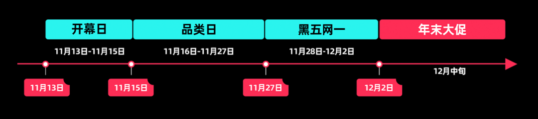 总之,平台补贴够多,力度够大,打铁还需自身硬,我们能不能抓住这泼天富贵,除了运气还得看看我们自己准备充不充分!我们先回顾一下今年黑五的几个阶段: