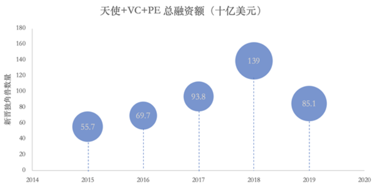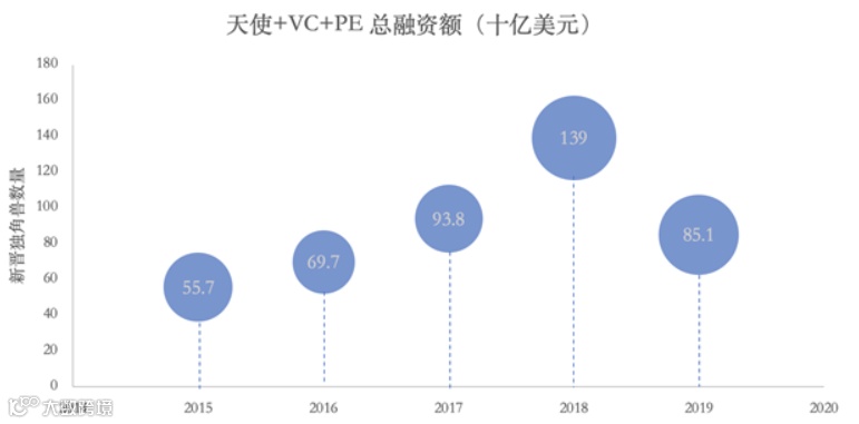 2019 年,超过半数的新晋独角兽出生于 2012-2015 年,即在他们在身价过十亿时,大约 4-7 岁左右。这跟初代独角兽的情况差不多。有潜力的初创基本上都是这个年龄进行后期融资的。所以也就不足为奇啦。
