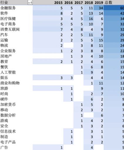 去年一共有 142 家新晋独角兽,其中美国以 78 家的成绩遥遥领先,相较 2018 年多了 11 家。排名第二的中国有 22 家,数量不及美国一半。2019 年中国独角兽的“出生率” 与 2018 年的 58 家相比出现明显下跌;即便如此,也是排名并列第三的巴西和德国的 4x 多。不过,对于这两国来讲,这样的“出生率”已经是破纪录了。后面并列第五名的三个国家为大英帝国、以色列和印度,各有 4 家新晋独角兽。
