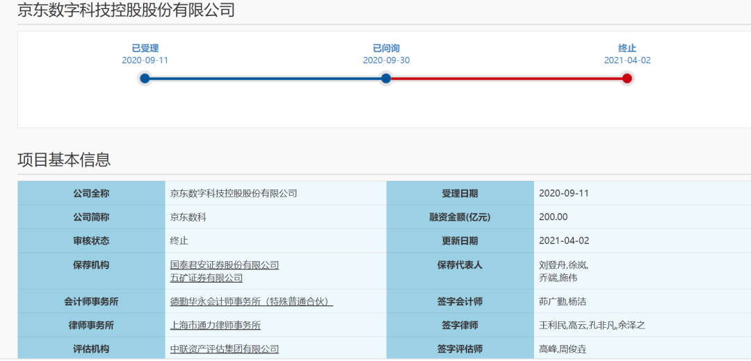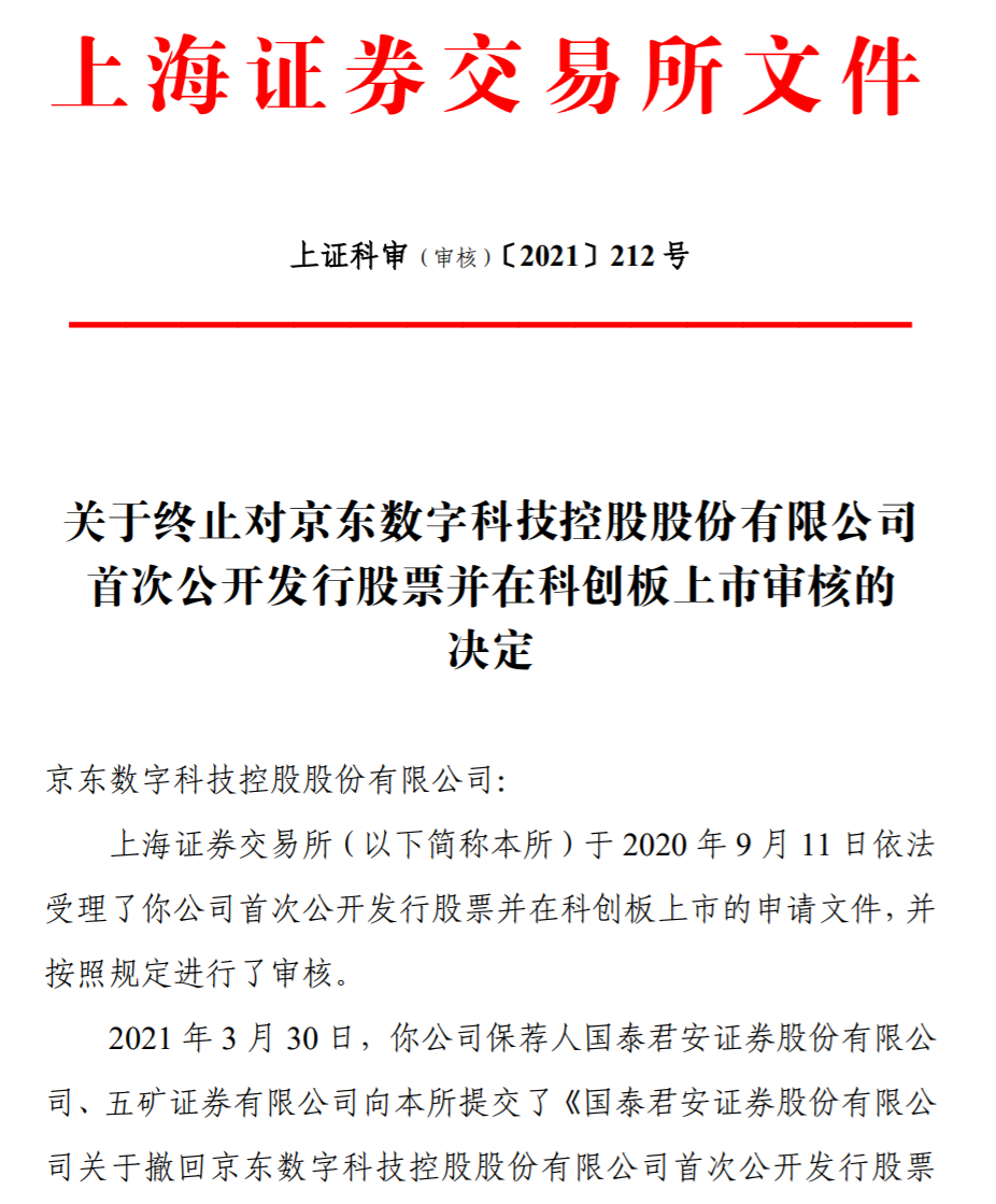 4月2日晚间,上交所发布公告称,因京东数科撤回发行上市申请或者保荐人撤销保荐。根据相关规则,上交所终止其科创板发行上市审核,这意味着京东数科的科创板上市之路也暂时画上了休止符。