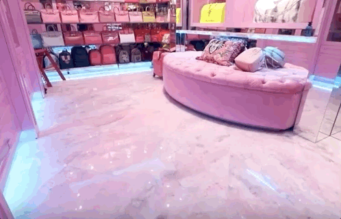 而衣帽间的尽头,还有一个粉色的门。打开这扇门需要虹膜、指纹双重识别,这安全级别堪比银行金库的防弹门。