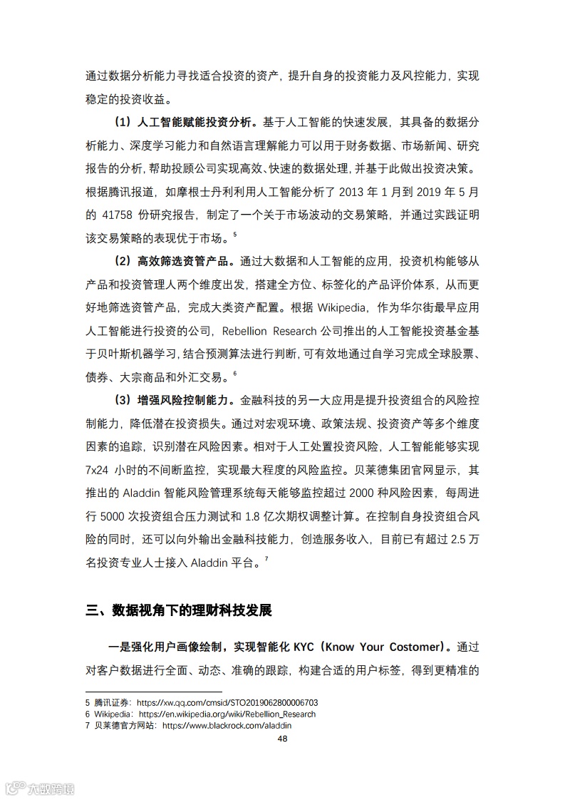第四,理财科技行业发展,拓展长尾用户财富产品,提升机构资产配置能力。