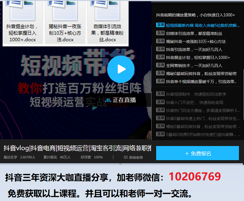 小编除了解决抖音疑难杂症,还提供免费提供抖音运营知识直播课程。想学习更多抖音运营干货的小伙伴请加小编微信:10206769 预约学习干货课程如图所示。