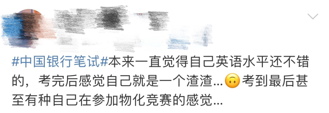 考生们纷纷在微博上“控诉”中行“为难人”的笔试题。