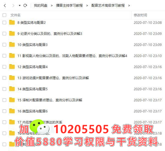 有想来听课来了解播音配音的朋友或播音配音运营过程中有遇到问题的朋友,可以加威:10205505,记得备注(来听课)加入我的指导群,里面有跟你一样爱学习的朋友,欢迎大家前来!
