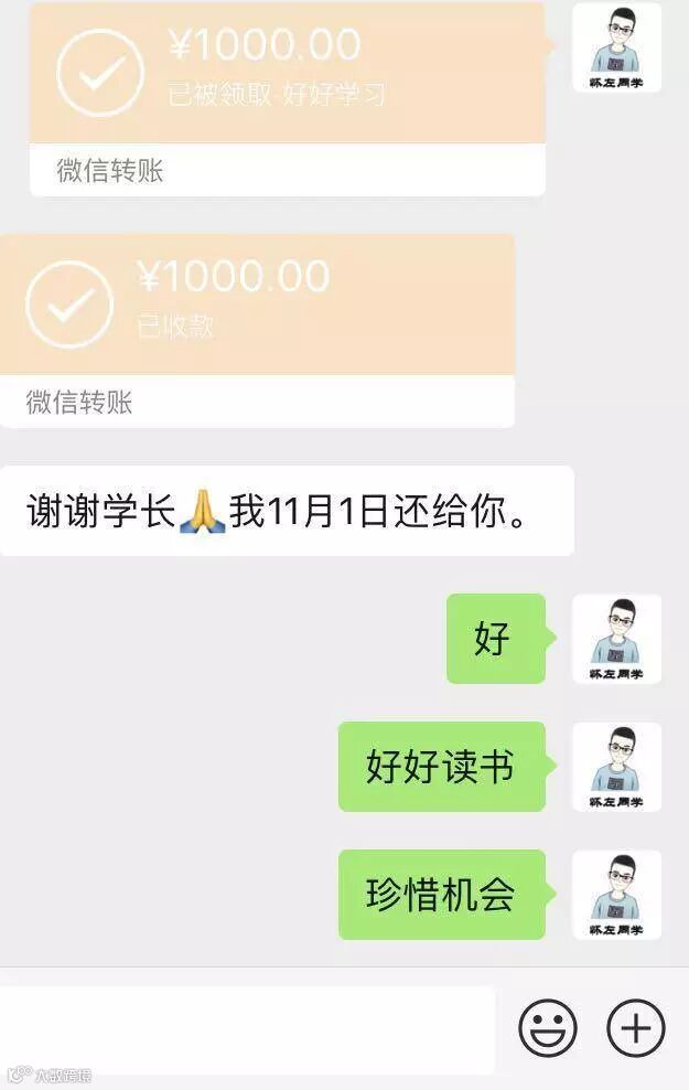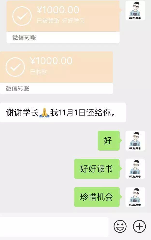 快开学时,她还差一千元,借了一圈钱没借到,到我这里时,我把钱借给了她,并叮嘱一定要好好学习。其实当时最触动我的不是她的故事,因为贫穷,也是我自小经历的,都已经习惯了。
