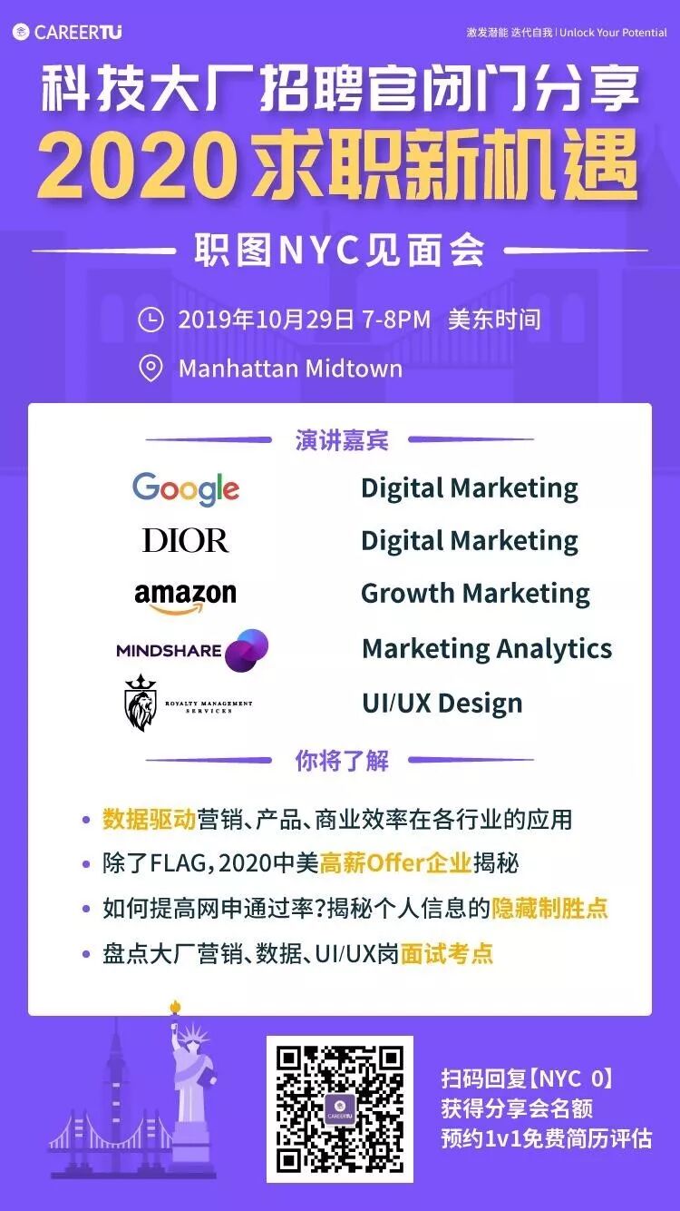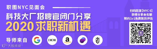 10月29日,职图携手Google, Amazon,Mindshare等名企导师,将在职图办公室举行闭门分享会,为大家剖析2020求职新机遇,让你提前锁定心仪Offer!