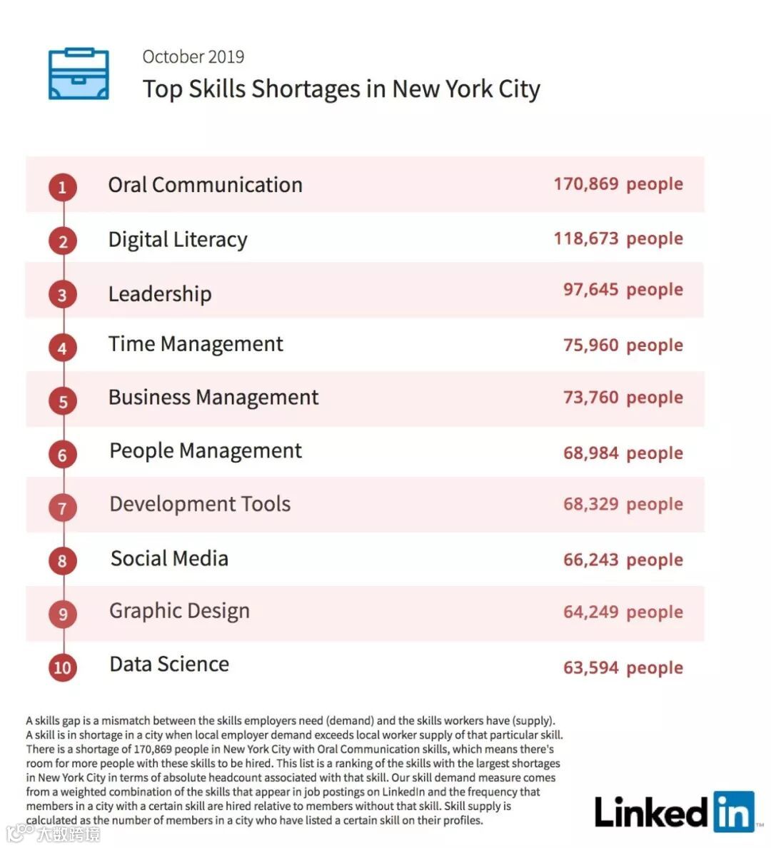 那么哪些是纽约地区短缺的劳动力技能呢?请看下图!
