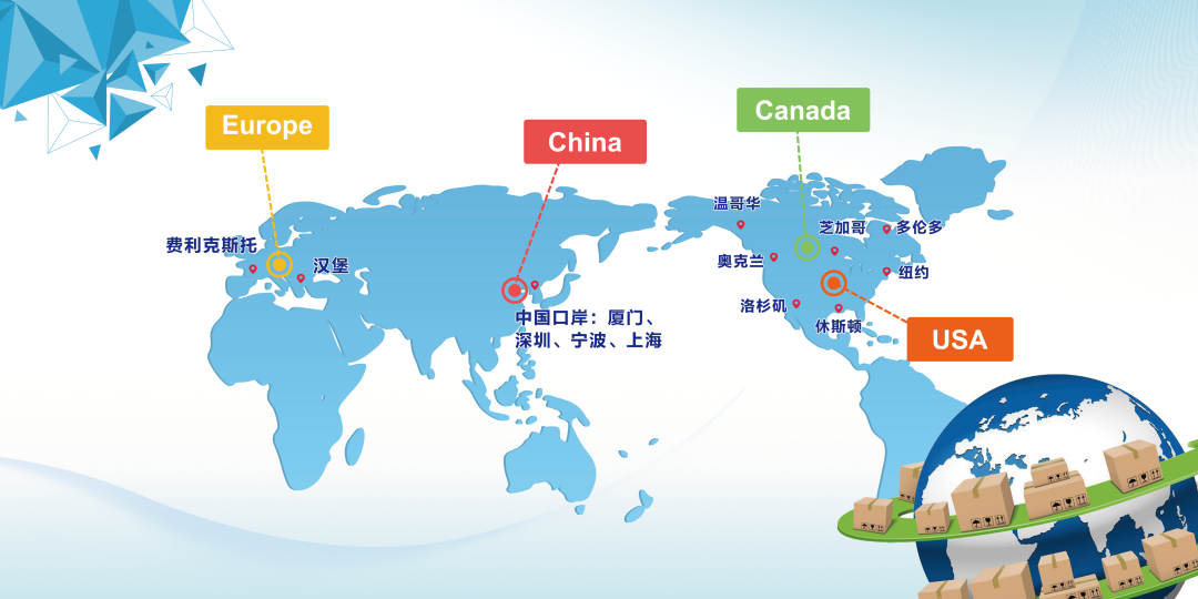 拓领环海专注于中国至北美的传统航运业务,美国、加拿大、英国、德国的跨境电商头程业务,以及美国海外仓仓储配送、一件代发、退件换标等配套业务。我们拥有成熟的物流体系,可提供厦门、深圳、宁波、上海、青岛口岸进行选择,为客户提供定制化的物流方案。长期以来,我们坚持“以人为本,服务至善,诚信筑基,悦客立业”的理念,致力于推动跨境电商的发展,帮助多方企业卖家品牌出海。