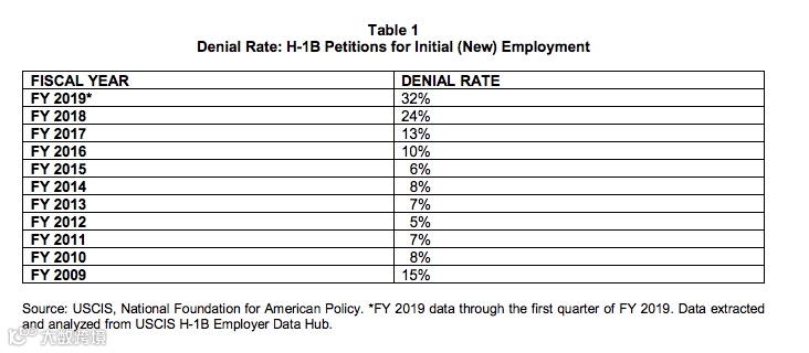 今年4月1日,美国移民局开放了H1B的申请,短短4天之后,到4月5日时,美国移民局说已收到足够多的抽签申请。然而NFAP的报告称:今年一季度的H-1B首次申请拒批率高达32%,是2016财年的三倍之多。
