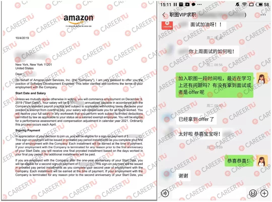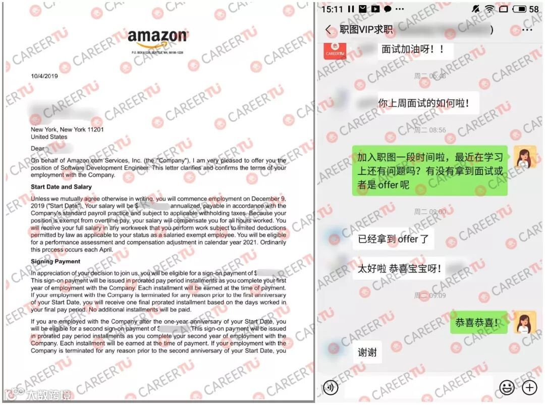 恭喜职图就读于New York University的S员经过不懈努力后斩获Amazon的Software Development Engineer!S学员研究生专业为Computer Science ,由于一直以来对于数据的热爱,从一开始就选择了数据分析作为自己的求职方向。