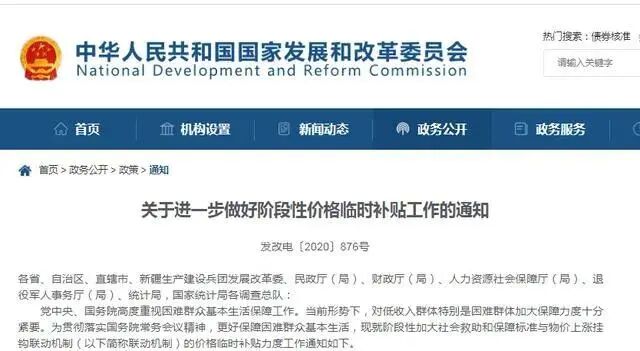 导读:国家发改委等部门近日印发《关于进一步做好阶段性价格临时补贴工作的通知》,提出今年3月到6月,每月价格临时补贴