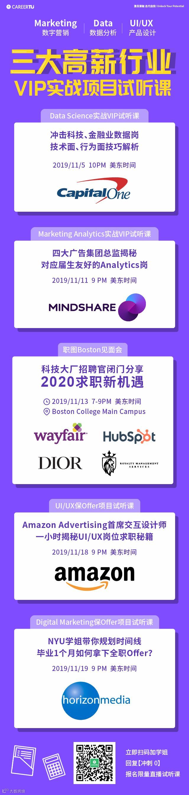 万圣节结束就将迎来崭新的十一月,学姐也为大家带来十一月最新的讲座!依然是满满的干货,满满的能量!现在预约,节后继续努力,冲呀!