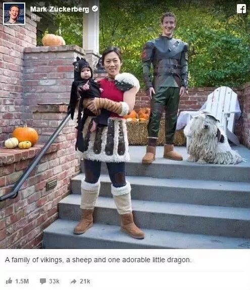 相比于乔布斯,扎克伯格就低调多了,不花大价钱、没有太多装饰,也不会开放自家后院。万圣节时,扎克伯格会全家一起Cosplay,Cos 大雪怪,Cos 驯龙高手,曾经还在 Facebook 发一张家庭合照,小扎一家就算过了万圣节。